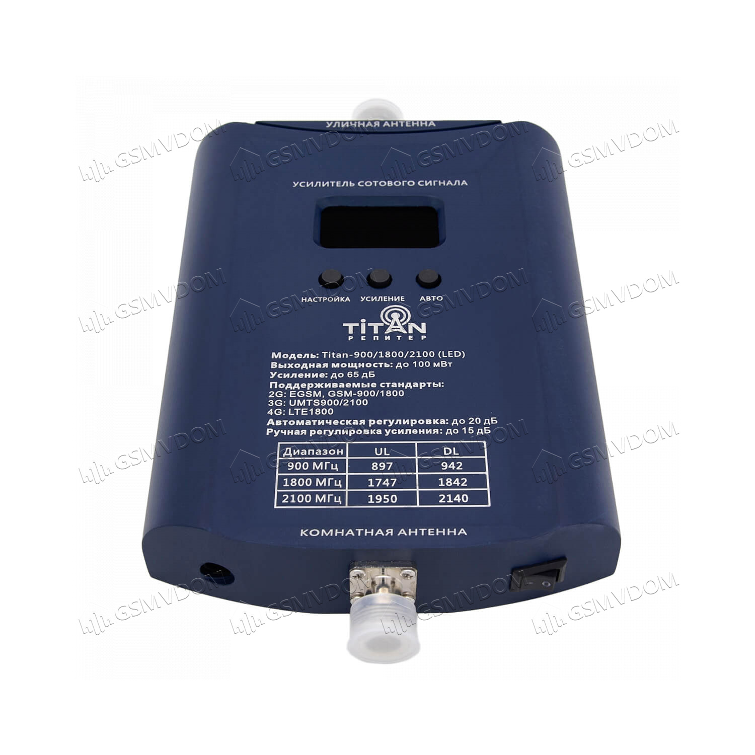 Усилитель сигнала связи Titan-900/1800/2100 комплект (LED) – оборудование, которое увеличивает сигнал от базовой вышки оператора и передает его на приемники. Может устанавливаться в жилых и производственных помещениях, которые находятся далеко от вышек связи либо имеют много физических барьеров, препятствующих распространению сигнала. Прибор эффективен на площади до 350 кв.м, максимальное усиление составляет 78 дБ. Может использоваться в помещениях с высоким уровнем запыленности благодаря защите корпуса IP 40.